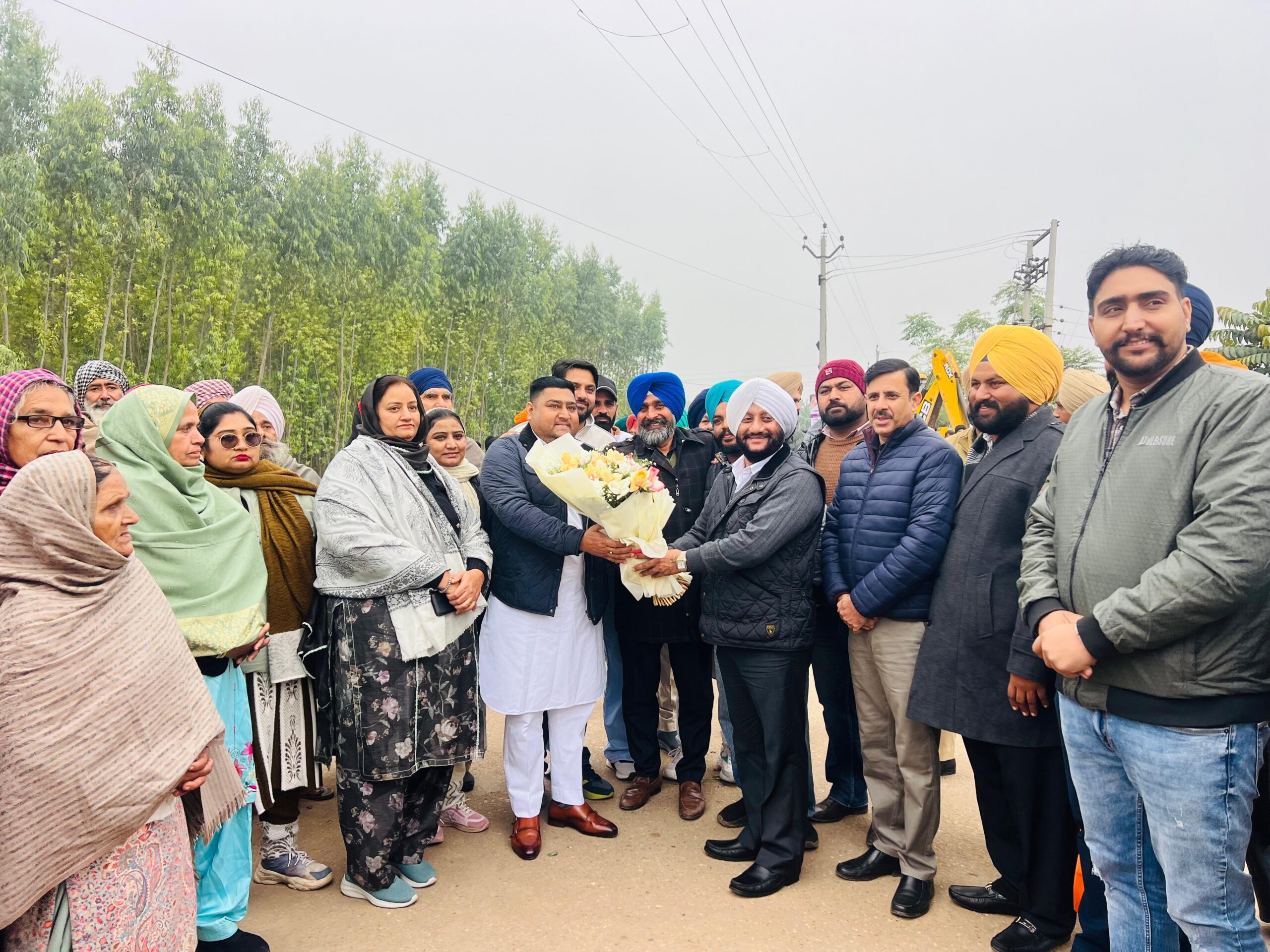 फोटो कैप्शन: सवाड़ा-सैदपुर-गिदड़पुर-चंडियाला मार्ग के नवीनीकरण का उद्घाटन करने के दौरान विधायक कुलवंत सिंह और अन्य गणमान्य व्यक्ति।